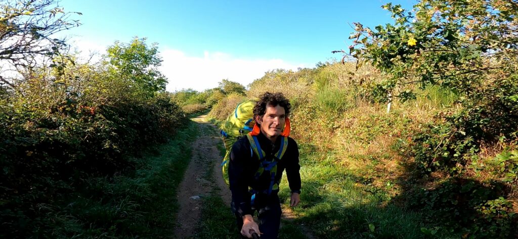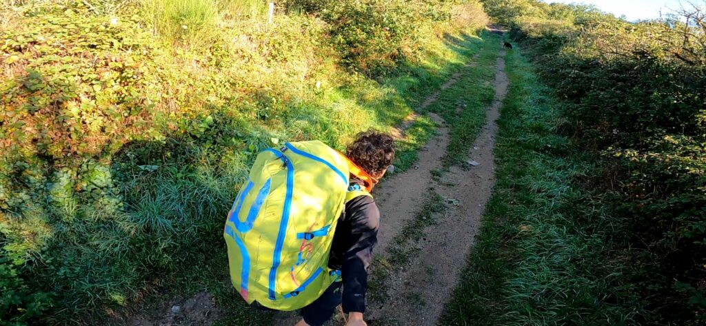 un peu d’entraînement avant le départ, le sac sur le dos, aïe aïe on est plus tout jeune 😉 …