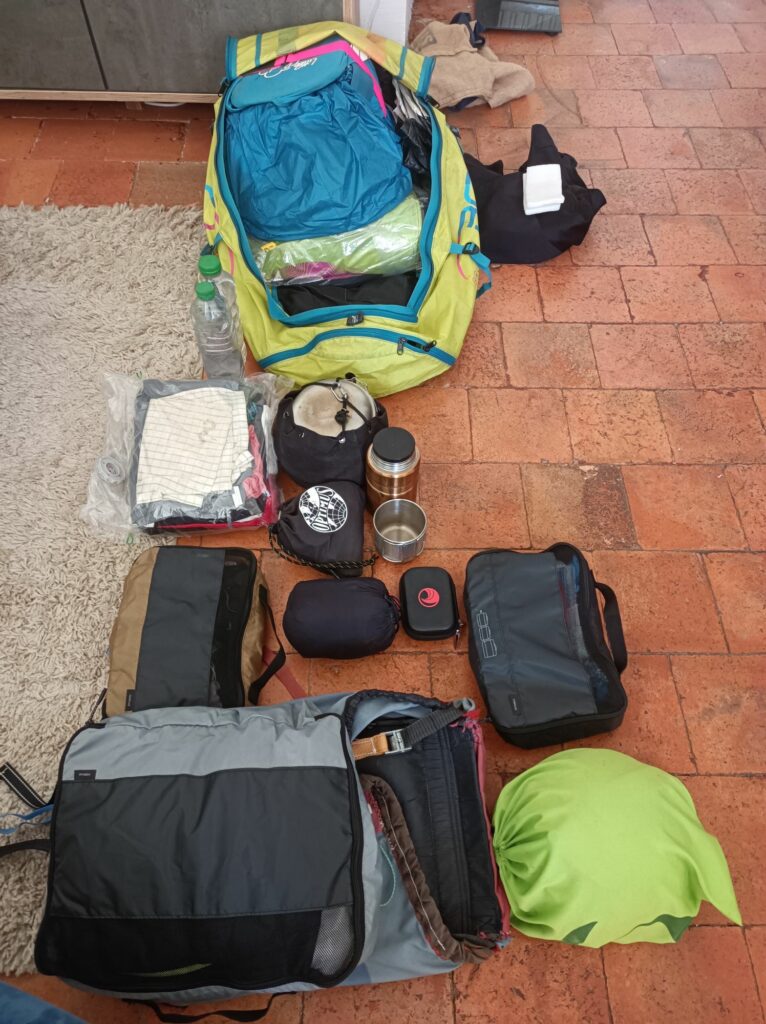 La préparation du sac à dos, difficile de tout rentrer dedans…