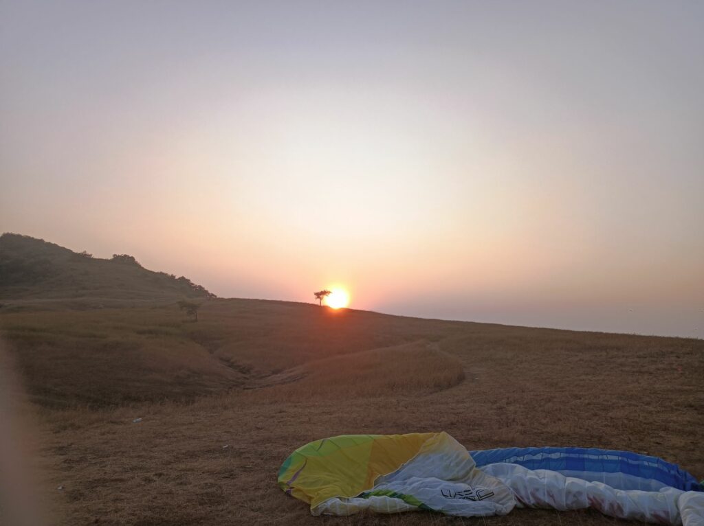 On a un petit site de vol accessible à pied ou en taxi pour 600 roupies, environ 7€ pour 3 pilotes avec vol du soir et sunset flight.