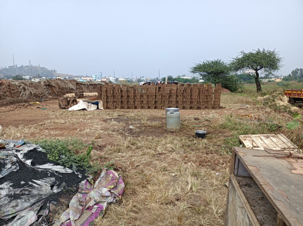 Au retour, entre l’atterrissage et l’appartement on passe par un raccourci, c’est là que l’on peut apercevoir la fabrication des briques en terre pour les habitations.