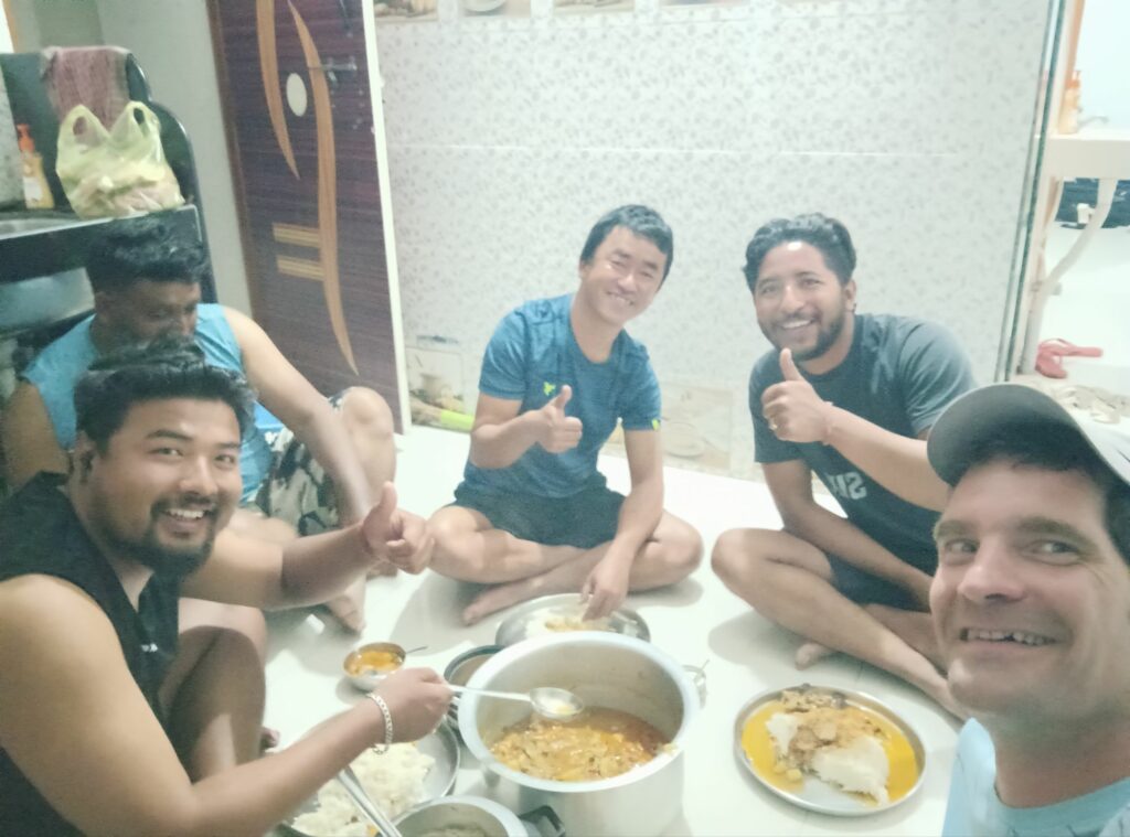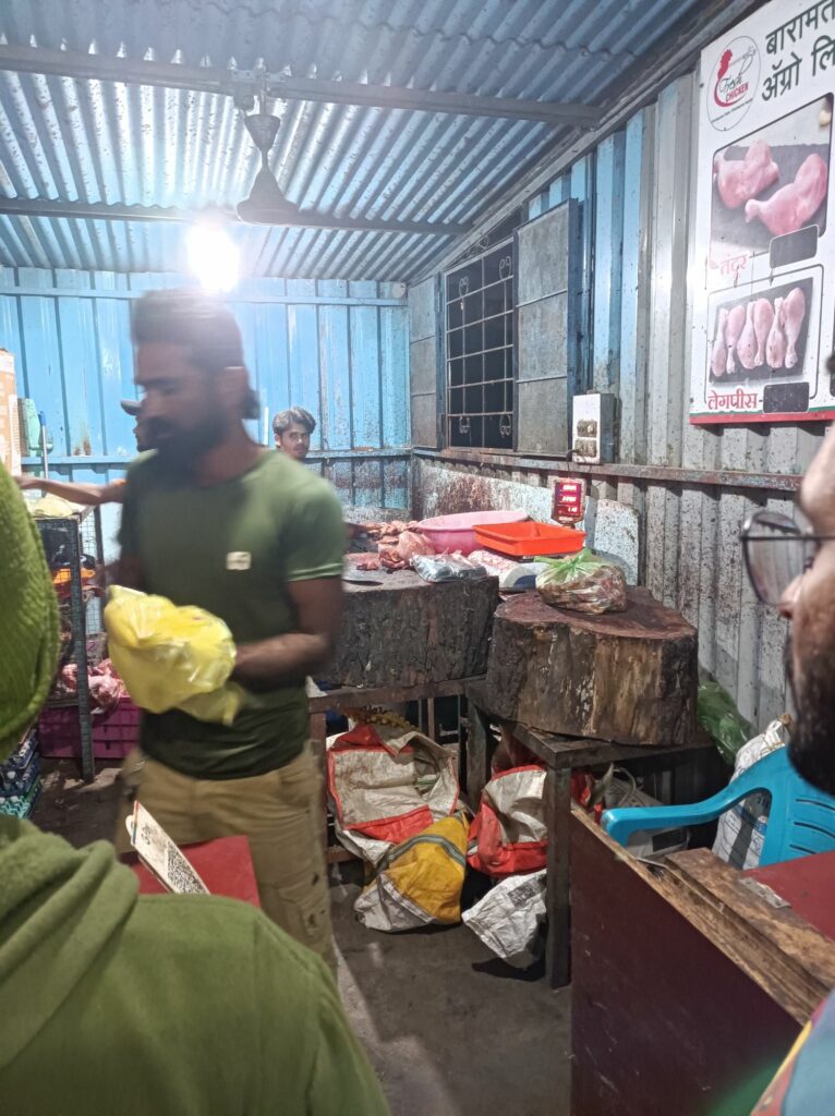 Les potos tandem pro Panchgani Les courses avant le repas Préparation du poulet en sauce avec les copains du coin, la boucherie, assez différente de celle en France évidemment, le poulet est tué sur place et vendu encore tout chaud !Un beau petit camion bien décoré !Bon je ne sais pas si le bus va arriver, mais ici faut pas s’inquiéter tout est possible Minimum 3 jusqu’à 5 sur les 125cc, photos à venir Le singe vient juste de chaparder un paquet de friandises dans le shop d’à côté, simple, rapide, efficace. Il suffit de prendre et de monter sur le toit !